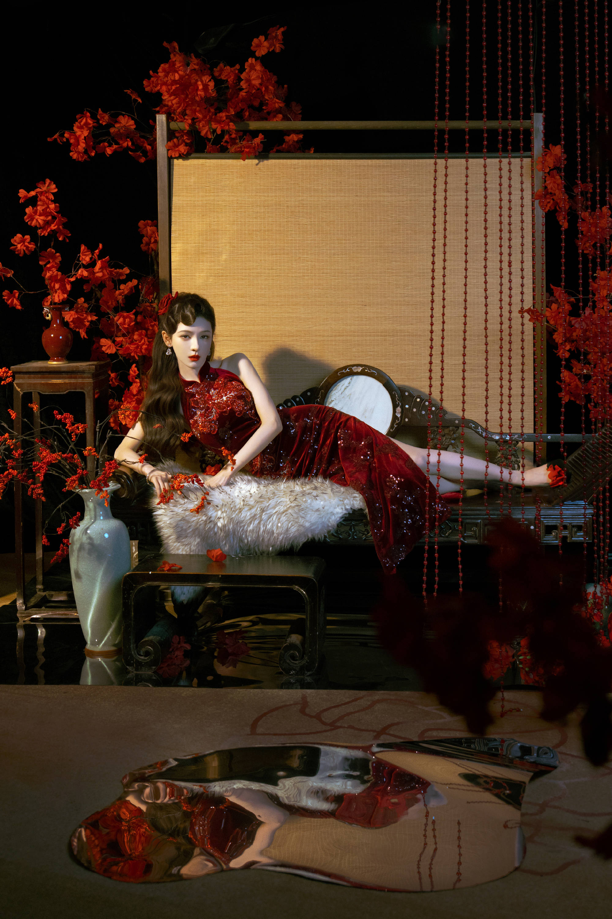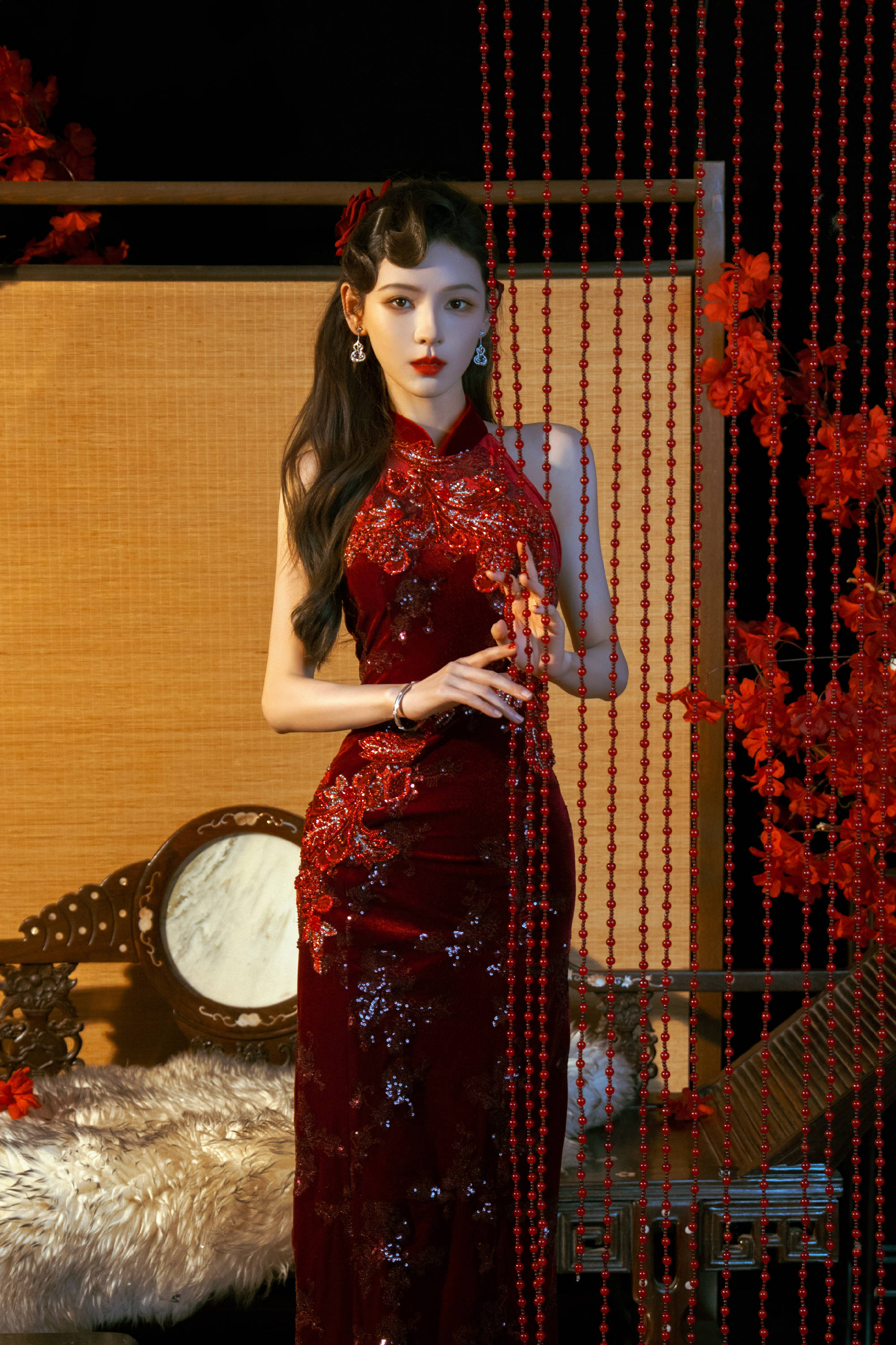 b体育app 张予曦穿红色旗袍明艳动东谈主!宛若玫瑰女郎性感柔媚
